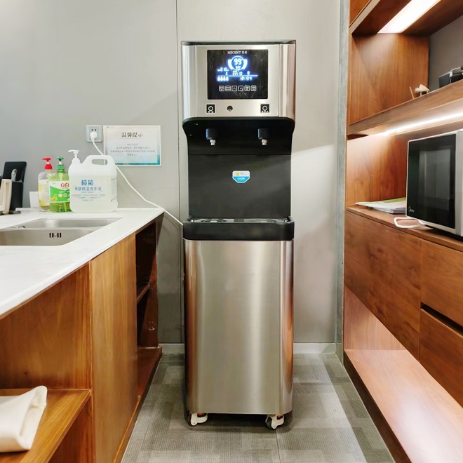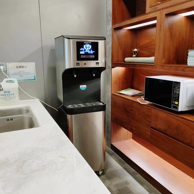 美辰直飲水機采用先進的RO反滲透過濾技術(shù),能有效的去除水中泥沙、雜質(zhì)、異味等有害物質(zhì),還有冷熱溫控功能,滿足員工泡咖啡與0泡果茶的需求。